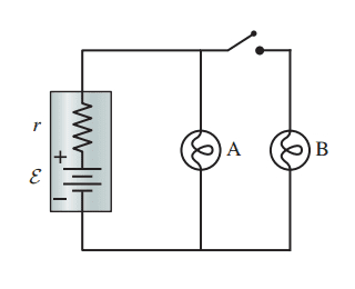 - By what percent does the current through A change when the switch is closed?