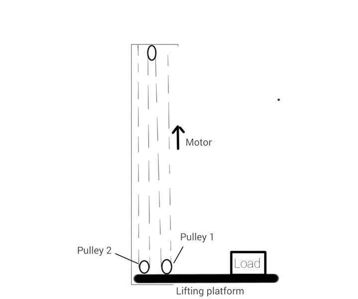 - Some participants question whether the forces exerted by the load on pulley 1 and pulley 2 are equal when the motor starts running, considering the load's position at the end of the lifting platform.