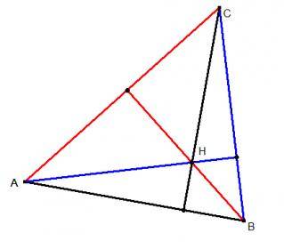 a. The lines through the vertices of a triangle ABC perpendicular to the opposite sides meet in a point.