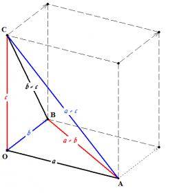 Prove that also, in both cases, (OA)^2 + (BC)^2 = (OB)^2 + (CA)^2 = (OC)^2 + (AB)^2So for the very first task I proceeded by attributing coordinates to each vector: a = (x(1), y(1), z(1)), b = (x(2), y(2), z(2), c = (x(3), y(3), z(3)), where the numbers are actually at the bottom left of the coordinates, but I don't know how to use that notation here.