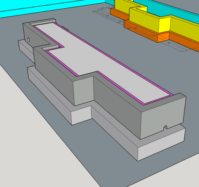 The volume measures around 22" high, throughout, 20ish' wide and between 3-6' deep, depending on where you measure in the "T" shaped foundation. This will be around 2.7 cubic yards of mass plus the top slab (the eventual fireplace will rest on the top slab).