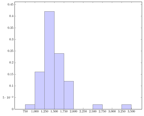 \addplot+[hist={bins=10,density}]