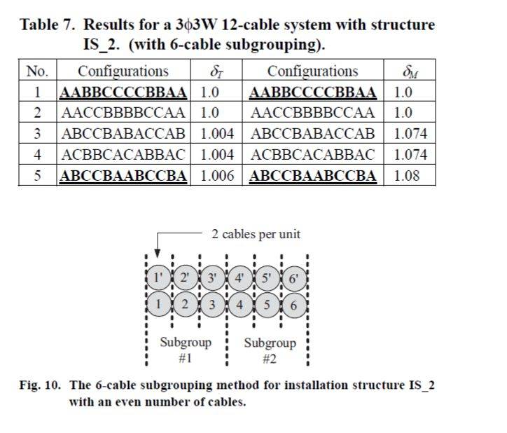 The discussion revolves around the installation and phase arrangement of parallel medium-voltage cables, particularly focusing on the implications of cable layout on current sharing, electromagnetic compatibility (EMC), and load capacity. Participants explore theoretical and practical aspects of cable arrangement, including the effects of proximity and magnetic fields in a substation context.