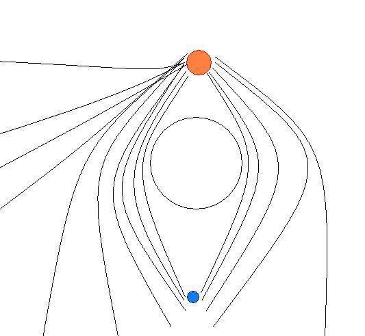 An object with an enormous amount of mass (black hole? antimatter? blackmatter?) is positioned smack in the middle of to other object, one being a star much like our sun, the other being a point where an observer stands. Let's just call it Earth at this time.