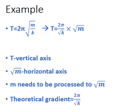 Where 2L becomes L as the 2 is lost. I am not fully sure if this is correct or how to properly get rid of the 2 in 2L.We must follow the rule of y = mx+c whereby y = T, m = the constant variables (pi and g), and x is the independent variable (L). There is no y-intercept c. Hence the equation must be 'processed' in this way.