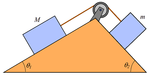 M=4kg; m=5kg; θ_1=28°; θ_2=36°