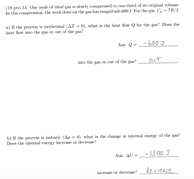 The discussion centers on the determination of internal energy changes in a diatomic gas, specifically when given a specific heat capacity (Cp) of 7/2. The user questions whether this indicates a diatomic gas, which would alter the equation for internal energy. The correct approach involves using the equation dU=(3/2)nRdT for monoatomic gases, while for diatomic gases, the equation becomes dU=(5/2)nRdT. The conclusion drawn is that the distinction between monoatomic and diatomic is not necessary for solving the problem, as the first law of thermodynamics provides a clear path to the solution.