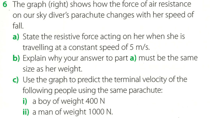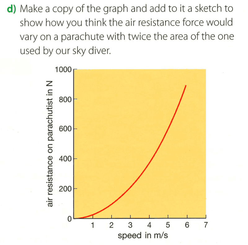From the graph, show the force of air resistance on our sky diver's parachute changes with her speed of fall