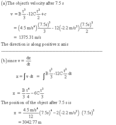 a = Bt^2 − 1/2Ct, where B = 4.5 m/s^4 and C = −2.2 m/s^3