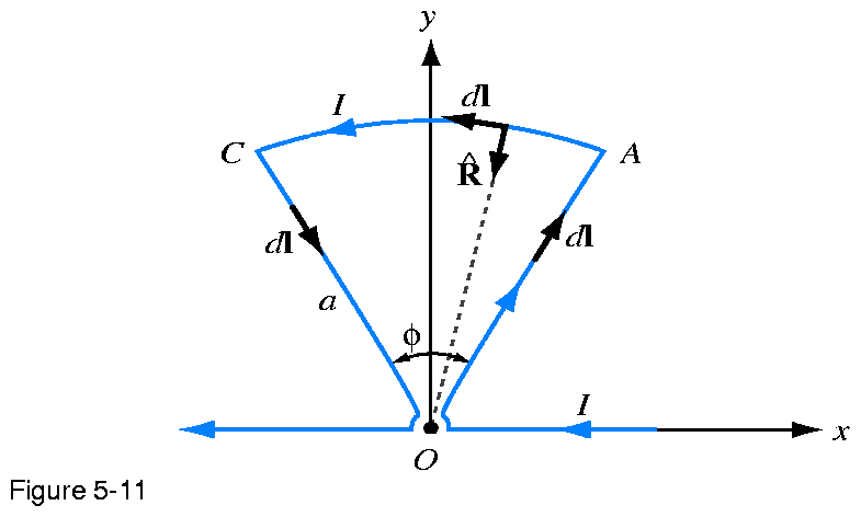Determine the magnetic field at the apex of the pie-shaped loop shown below. Ignore the contributions of the field due to current int he small arcs near 0.