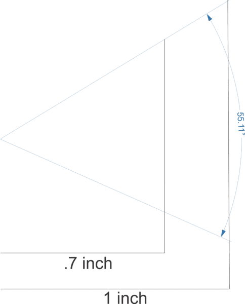 (C) tan(55)*.7 = 1 inch (thus 55 degrees = 1 inch)