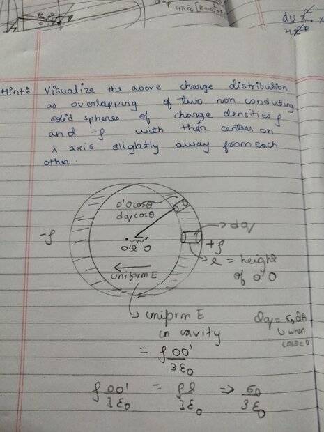 2) I have derived this formula for electric field in a cavity when the cavity was in a wholely positive sphere...doesnt the half negative and half positive distribution change the formula a bit?