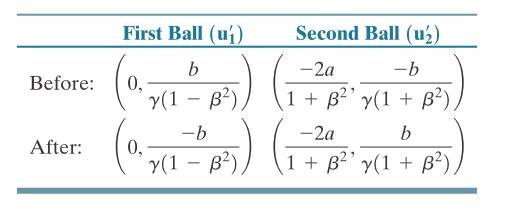 This table shows the velocities of two balls before and after collision in terms of their vertical and horizontal components. That is how it happens in frams S.