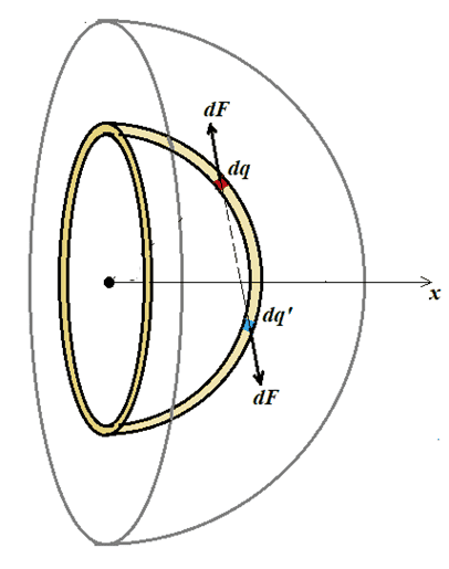 He told us that the contact force due to one halve on the other halve and the electrostatic force will balance each other.