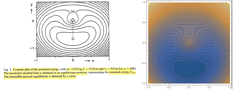 With that, the author makes a contour plot of the potential energy [Fig 1], and a Parameter Plane of R and ## \mu ## [Fig 2], where R and ## \mu ## are given by: