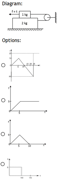 - Coefficient of friction between all the surfaces in 0.5. Which diagram would describe the friction between the ground and the 2Kg Block when f = t N is applied on the 2kg Block? It is given that the string is not taut initially.(Plz check the the diagram in the image attached). take g= 10m/s^2