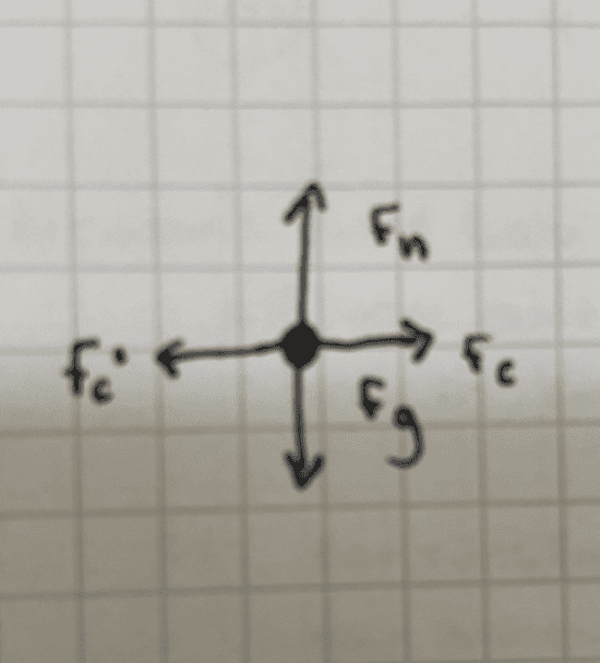 a) Using a dot as a particle model (representing the person), draw and label the forces (not components) exerted on the person. Each force must be represented by a distinct arrow starting on, and pointing away from, the dot.