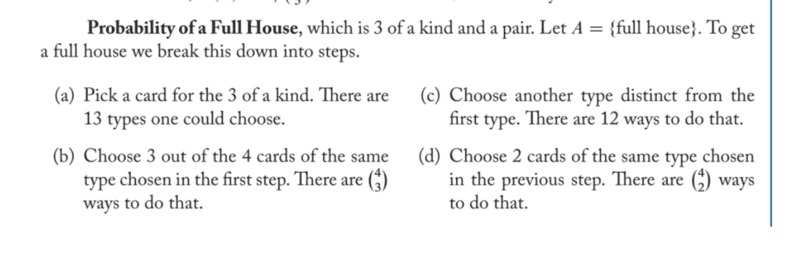 I'm not getting the process(I know math behind it ie permutations, combinations, some basic probability formula of favorable events etc). But I don't get the card game here. I watched how poker is played and they didnt' discuss about it. I've played some cards, but I'm no expert at it. I just play basic games only(no 21 cards Rummy or Marriage Rummy game etc).