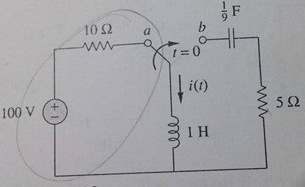 In the figure given, the switch was at position A for a long time, at time =0 the switch is turned to position B...