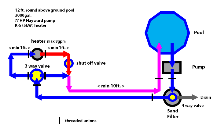 I am having a heater installed for my 12ft round above ground puddle pool. The heater is a K-Star K-5 (5kW) heater.