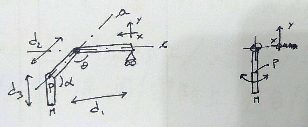 - III is welded to II, it's the PM segment. α is fixed between a axis and segment III. Length d2