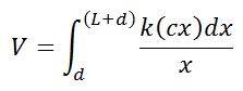 The discussion revolves around a potential difference problem involving the setup of an integral for calculating voltage, specifically using the equation V=kq/x. Participants are examining different approaches to integrating the expression and the implications of variable changes in their calculations.