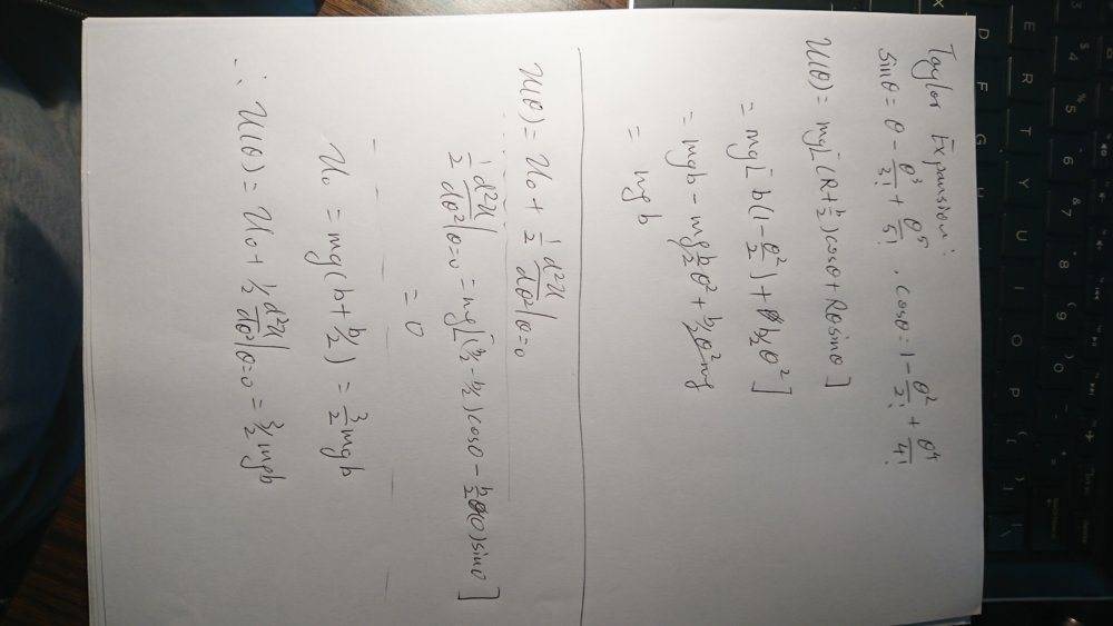 - U(𝜃) = mgh(𝜃) = mg[(R+b/2)cos𝜃 +R𝜃sin𝜃]