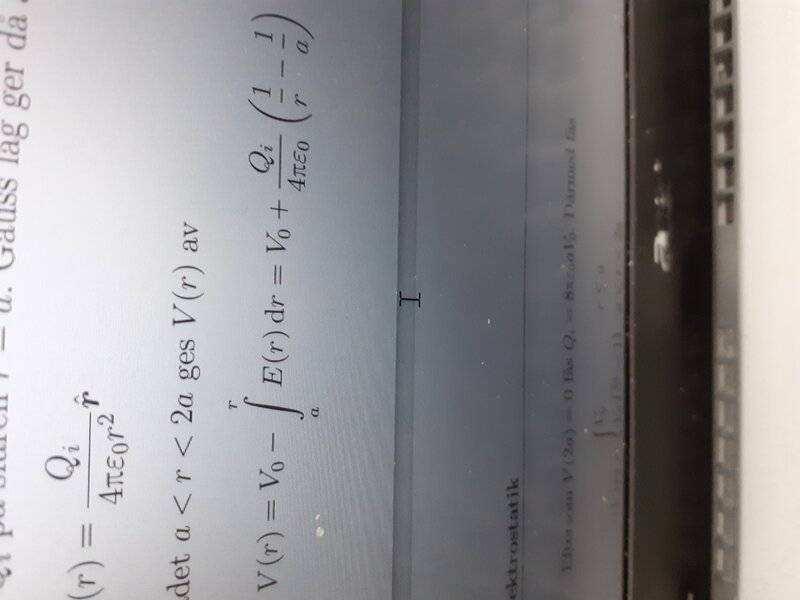I don't understand why in a<r<2a, V(r)=V_o-\int^r_a E*dl. I would write V(r)=\int^r_a E*dl+\int^2a_\infty E*dl