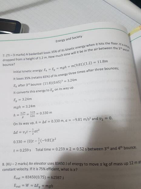 There are concerns regarding the clarity of the textbook solution, particularly about the use of units and the necessity of calculating energy. Participants are also considering the implications of energy loss after multiple bounces and how that affects the height the ball will reach.