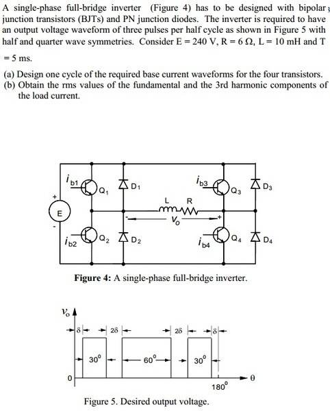 The issue I have is the determining the waveforms for the transistors. Since the load is inductive, the output current, and therefore the current through each leg when it is on will be lagging the output voltage. I am a little confused as to how a lagging current can possibly form such nice pulses at the output with a constant voltage source. Perhaps someone here can explain this to me?