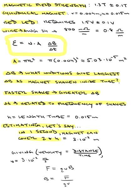 As the title suggests, I have a school project where I’m supposed to design a hand shake flashlight using AWG 34 copper wire, a niobium cylindrical magnet, hard paper (sort of like cardboard), and a red LED. The goal’s to get the red LED to light.