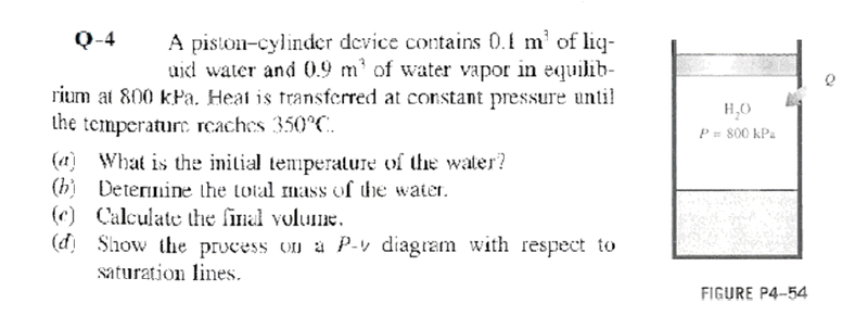 its thermodynamics and no its not from my textbook. For part a) i couldn't find a formula or anything that helps me work out the initial temperature. I'm thinking that i have to use the property tables for saturated water, and at 800kPa the saturated temperature is 170.41.would that be correct?