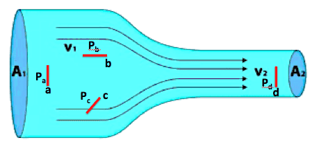 I am trying to understand how to apply Bernoulli's equation (which is valid along a single streamline and in the case of zero viscosity) to the situation below.