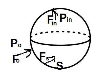 $$ P_{in} = P_o + \frac {F_s}{4 \pi R^2} $$ Taking the surface tension ## S = \frac {F_s} {2\pi R} ##, $$ P_{in} = P_o + \frac S {2R} $$