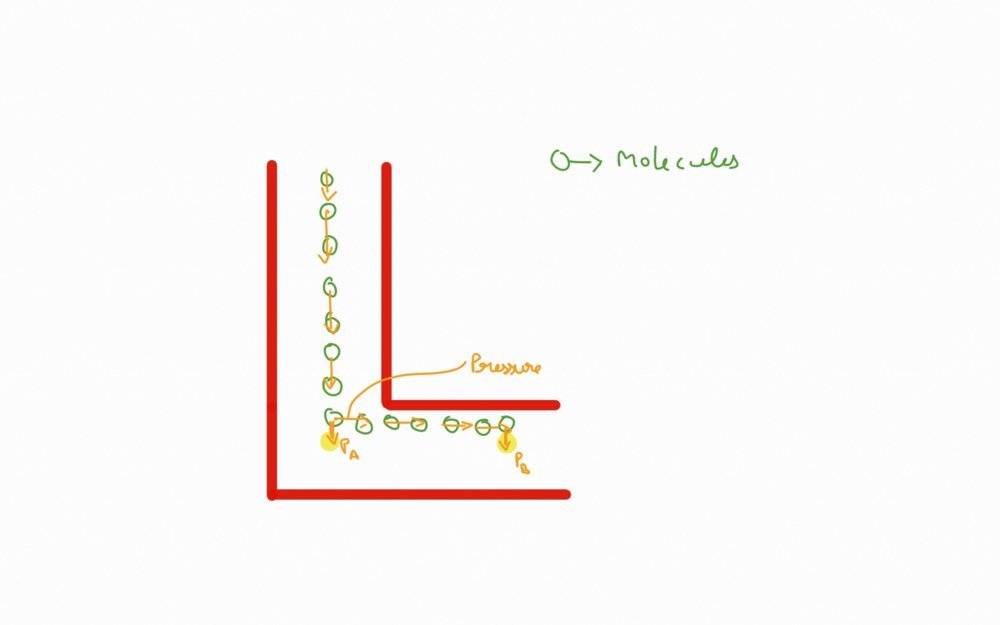 In this setup the two samples, say ##A## and ##B##, must experience same pressure i.e. ##P_a = P_b ## due to Pascals law. But the column of molecules above the sample is different. Isn't? Above B there are less number of molecules. On the other hand, above A there are more number of molecules and also ##P_{Atm}## adds to it. Due to this, the ##P_a > π_b##. But this isn't the case. When I asked this question to my teacher, he said that around the sample ##B## there are particles to the left that also exert pressure on it due to which ## P_a = P_b##