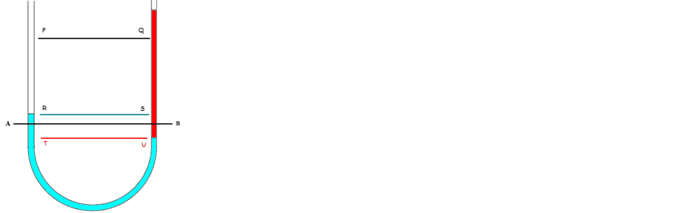 - Shown in the diagram below is a U-Tube with water on the left side and oil on the right. The system is in equilibrium. The horizontal line ##\mathbf{AB}## is drawn such that it passes through water through the left tube and through oil in the right tube. Are the pressures the same along this line in the right and left tubes?