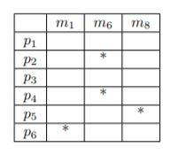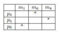 We can delete the rows $p_1$ and $p_3$ since these are empty. We can delete also the row $p_2$ because of $p_4$ and so we get:
