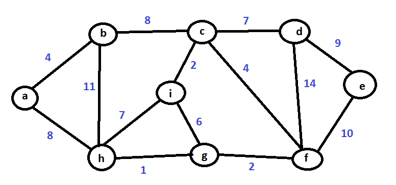 Q<-V // priority queue,the vertices are sorted,with respect to key[u]