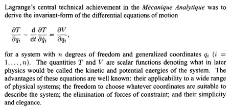 Lagrange extended this theorem of Euler to the motion of a system of points or bodies which act in any manner on each other; the action being in this case the sum of the masses by the foregoing integrals. Laplace has also extended the use of the principle in optics, by applying it to the refraction of crystals; and has pointed out an analogous principle in mechanics, for all imaginable connexions between force and velocity. But although the law of least action has thus attained a rank among the highest theorems of physics, yet its pretensions to a cosmological necessity, on the ground of economy in the universe, are now generally rejected. And the rejection appears just, for this, among other reasons, that the quantity pretended to be economised is in fact often lavishly expended. In optics, for example, though the sum of the incident and reflected portions of the path of light, in a single ordinary reflexion at a plane, is always the shortest of any, yet in reflexion at a curved mirror this economy is often violated. If an eye be placed in the interior but not at the centre of a reflecting hollow sphere, it may see itself reflected in two opposite points, of which one indeed is the nearest to it, but the other on the contrary is the furthest; so that of the two different paths of light, corresponding to these two opposite points, the one indeed is the shortest, but the other is the longest of any. In mathematical language, the integral called action, instead of being always a minimum, is often a maximum; and often it is neither the one nor the other: though it has always a certain stationary property, of a kind which has been already alluded to, and which will soon be more fully explained. We cannot, therefore, suppose the economy of this quantity to have been designed in the divine idea of the universe: though a simplicity of some high kind may be believed to be included in that idea. And though we may retain the name of action to denote the stationary integral to which it has become appropriated—which we may do without adopting either the metaphysical or (in optics) the physical opinions that first suggested the name—yet we ought not (I think) to retain the epithet least: but rather to adopt the alteration proposed above, and to speak, in mechanics and in optics, of the Law of Stationary Action.