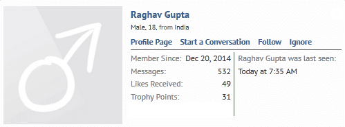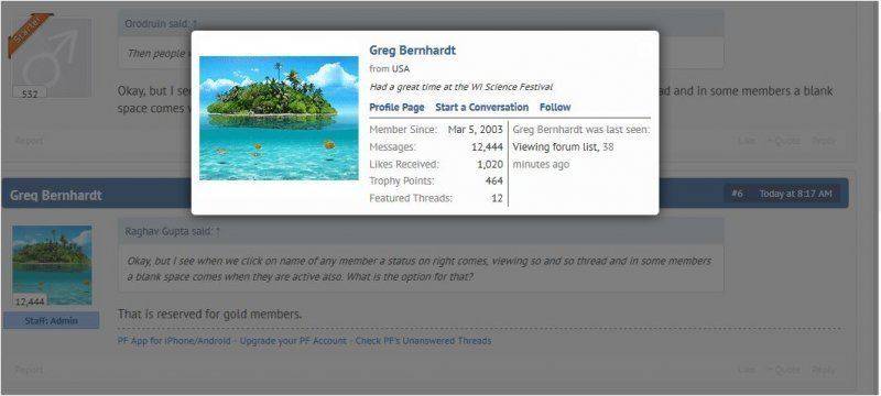 That is reserved for gold members.Raghav Gupta said:Okay, but I see when we click on name of any member a status on right comes, viewing so and so thread and in some members a blank space comes when they are active also. What is the option for that?
