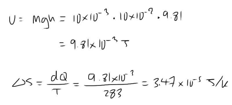 The discussion revolves around the probability of a pencil spontaneously jumping 10 cm into the air, considering thermal energy from its surroundings at 15°C. Participants explore the molecular motion of the pencil in different states and the implications of entropy in relation to this spontaneous event.