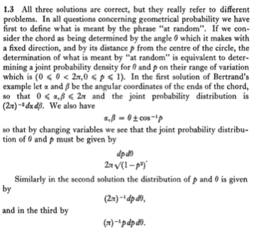 The discussion centers on the concept of geometrical probability, specifically the differing probabilities derived from using Cartesian versus polar coordinates when selecting a point within concentric circles. According to Kendall's Geometrical Probability (1963), the probability of randomly selecting a point in a smaller circle of radius 1 within a larger circle of radius 2 is calculated as 1/4 using Cartesian coordinates. In contrast, when polar coordinates are employed, the probability increases to 1/2 due to the uniform distribution in angle and the squared radius. This highlights the importance of coordinate systems in probability calculations.