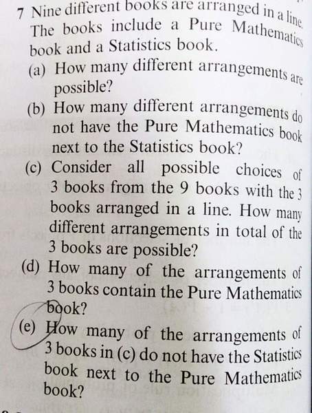i am having problem on part e , the ans given is 504-(7c1 X4 )= 476