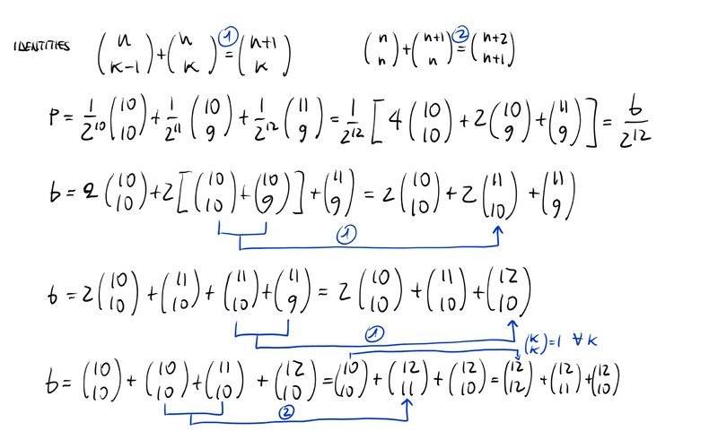 $$\frac{1}{2^{12}}\binom{12}{10}$$