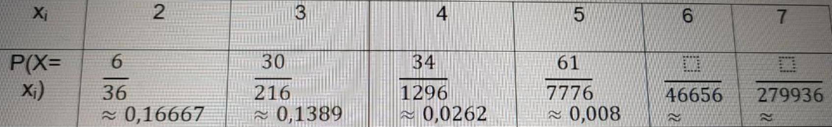 Let $X$ be the random variable that describes the points that we get at each game. I want to calculate the probabilities $P(X=x_i)$, where $x_i\in \{2,3,4,5,6,7\}$.