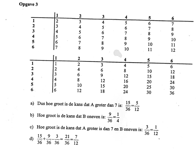 I placed the tables you get for A and B offcourse A is the first table and B is the second table. Below there are the answers.