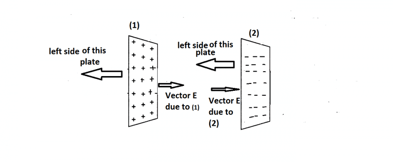 The answer is Fields due to both the plates will be equal and opposite so net field will be zero.I can not differentiate between the cases that are