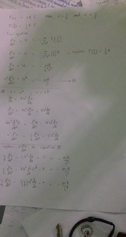 The discussion centers on solving a mechanics problem involving particles under the force F = rK, where r is defined as 1/u and u as 1/r. The user attempted to define a new variable v = u^4 and u = v^(1/2) but encountered difficulties in manipulating these variables. The primary goal is to determine the radius (r) of the orbit of the particles. Clarification is sought regarding the definitions of r, K, and u, as well as the direction of the force.