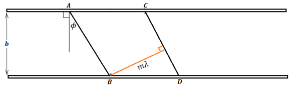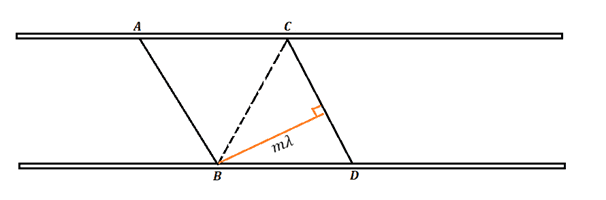 the planes AB and CD must be separated by a perpendicular distance equal to an integer number, m, of wavelengths: