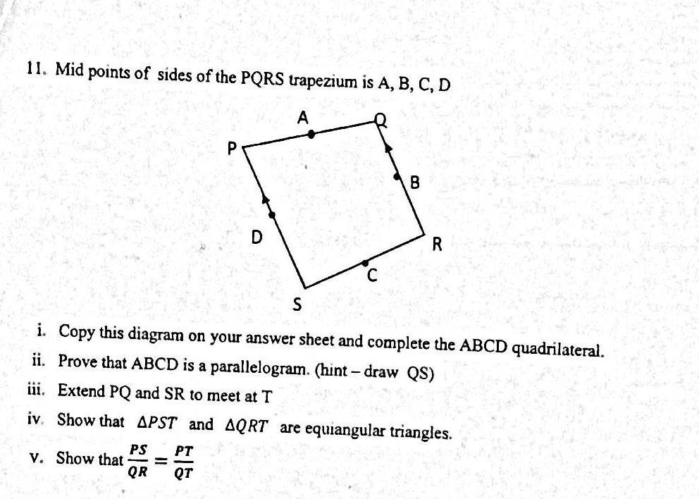 - A later reply confirms that angles PST and QRT are equal due to corresponding angles formed by parallel lines, supporting the similarity of the triangles.